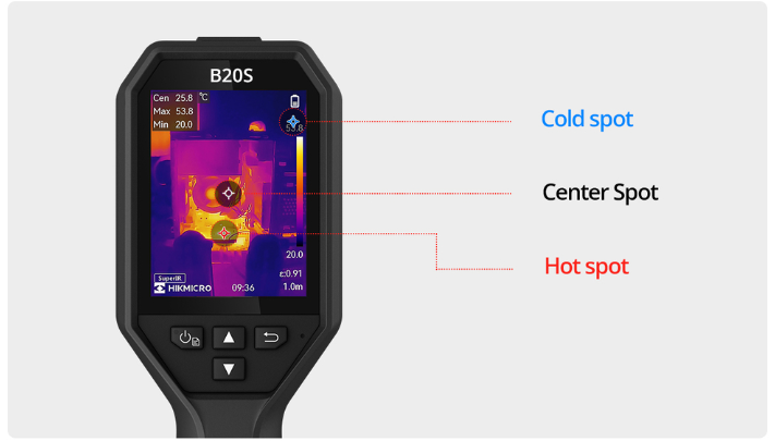The HIKMICRO B20S supports automatic hot spot, cold spot, and center spot measurements. This allows you to see at a glance: