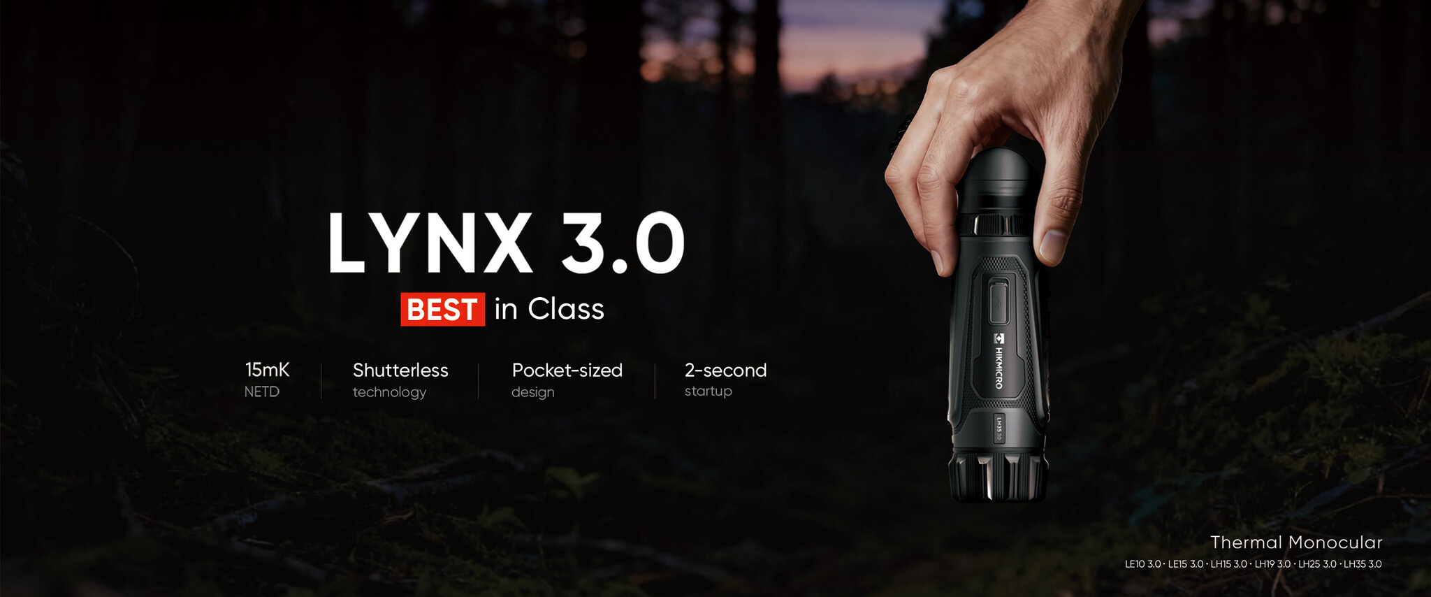 La série HIKMICRO LYNX 3.0 démarre en seulement 2 secondes et est immédiatement opérationnelle. Ce démarrage ultra-rapide est essentiel dans les situations où la réactivité est primordiale, comme à la chasse ou pour repérer un gibier qui n'apparaît que brièvement.