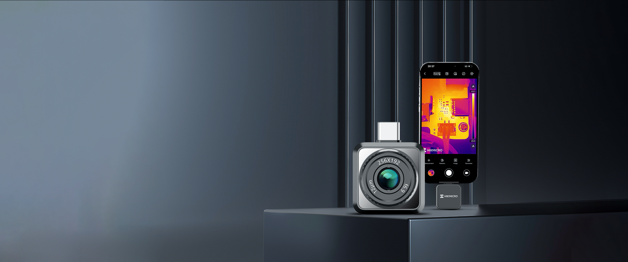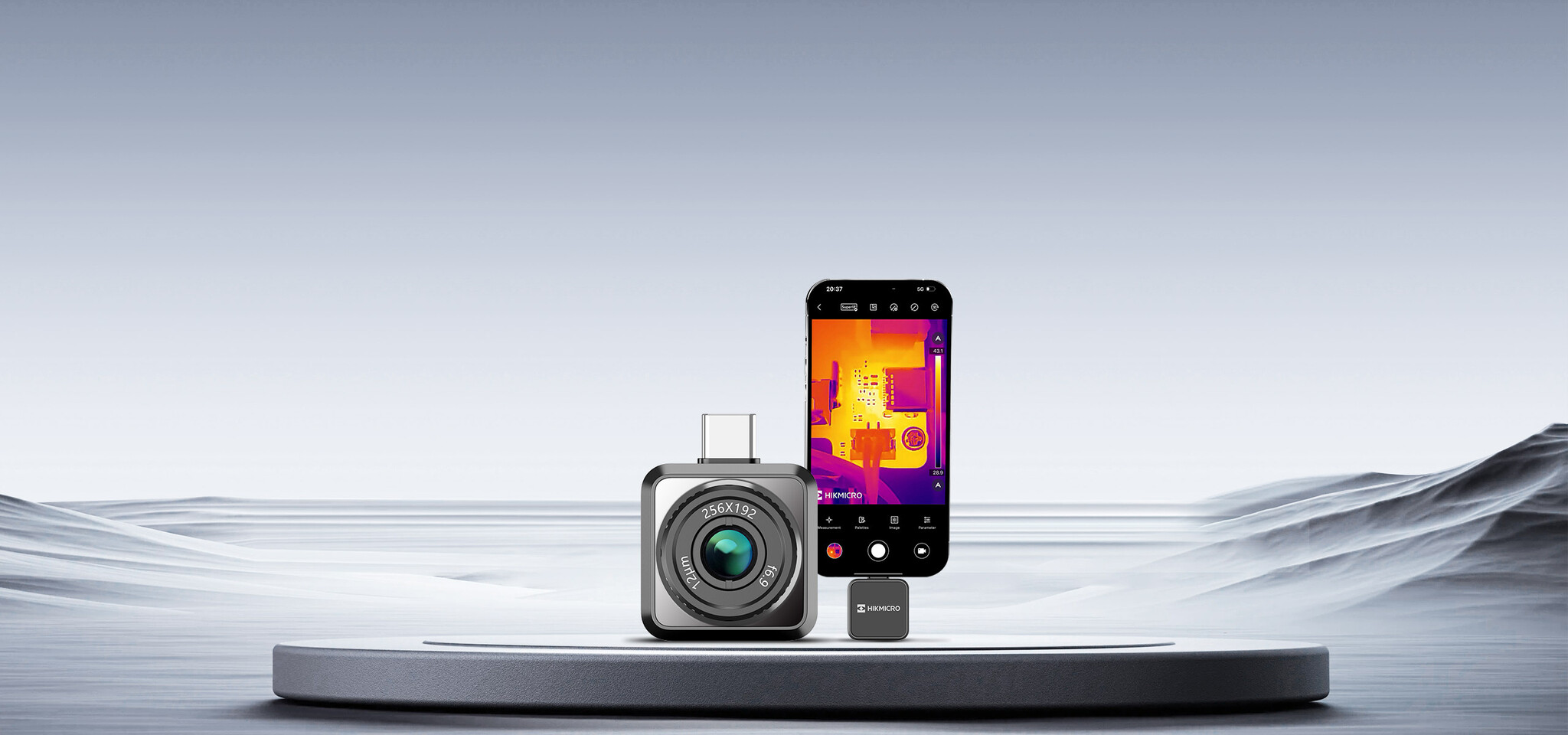 Caméra thermique pour smartphone de HIKVISION / HIKMICRO avec une résolution thermique de 256 × 192 pixels et un objectif à mise au point réglable. Lire plus.