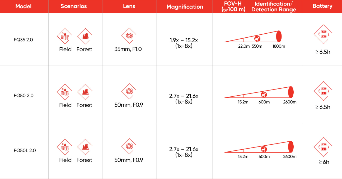 FALCON FQ35 2.0 thermische nachtzichtkijker is voorzien van een geavanceerde 640 × 512 pixels warmtebeeldsensor en een helder 1920 × 1080 OLED display. Dankzij de krachtige 35mm lens en de NETD-waarde van <15 mK levert deze kijker uitzonderlijke beeldkwaliteit, zelfs onder de meest uitdagende weersomstandigheden.